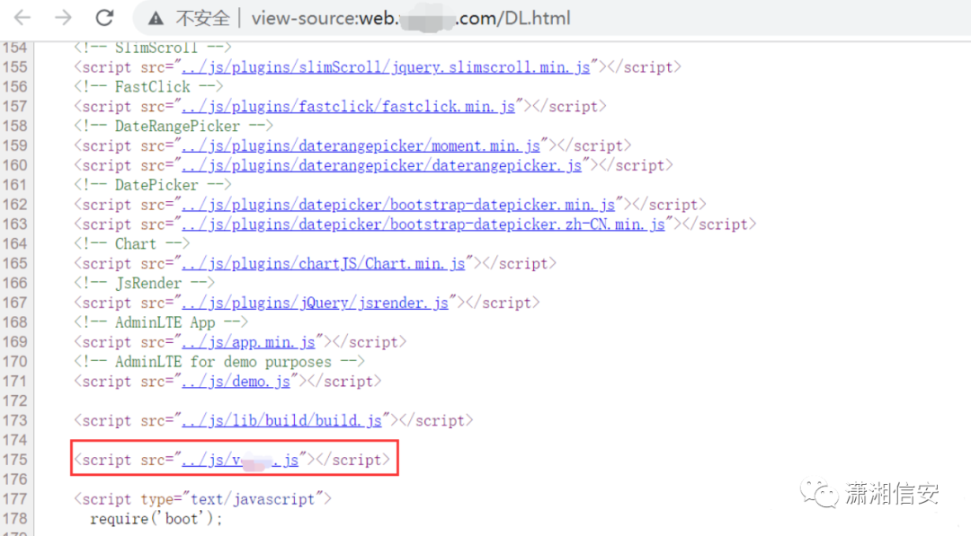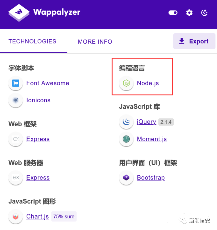 目录探测发现404界面也极像Node.js的404页面,后面重点关注js文件