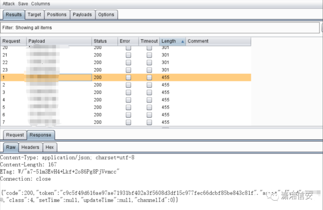 通过上述接口,可以通过用户的uid获取用户的用户名,将所有的用户名作为字典,放入burp爆破弱口令