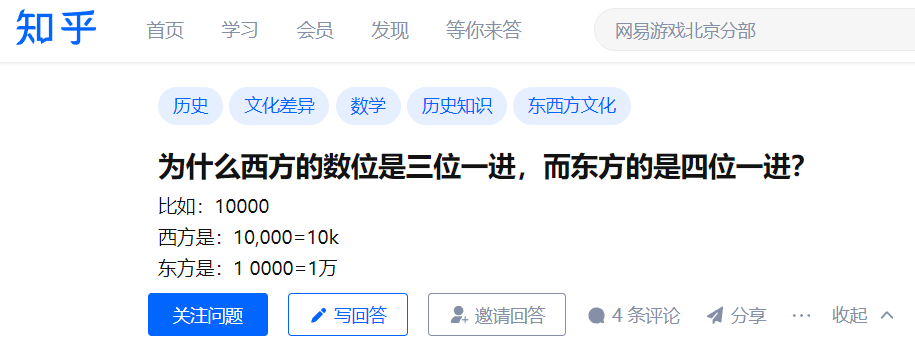 为什么中国的数字是四位一进,而西方的是三位一进?