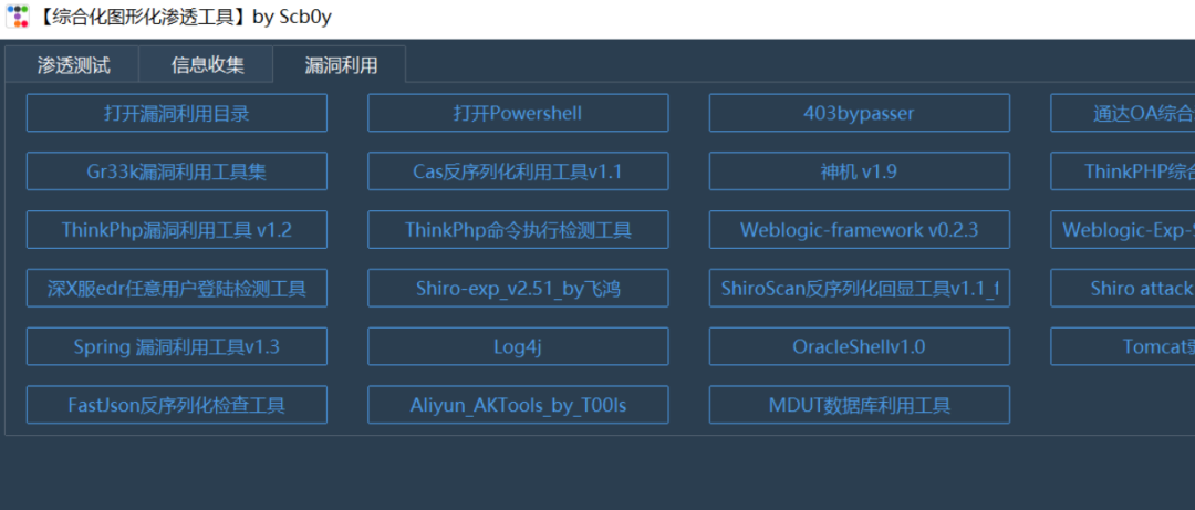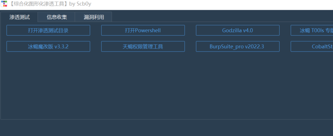 https://github.com/ccc-f/PenKitGui作为一个脚本小子,自然是有很多渗透工具,如果有一个工具箱能把这些工具集成到一个 UI 上,无疑能够提高我们的工作效率。