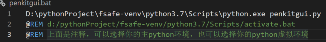 修改penkitgui.bat里面的 python 环境为你自己的(也可以选择虚拟环境),比如: