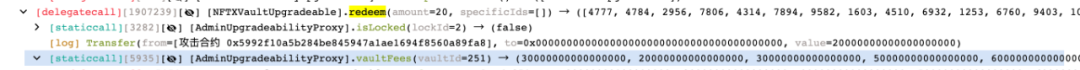2、接着攻击者又从 BeaconProxy 闪电贷借出 20 个 DOODLE 的凭证,之后通过 redeem 函数取出对应的 20 个 DoodleNFT,至此攻击者的准备工作完成。