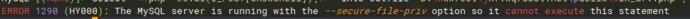 报错是因为mysql配置的 --secure-file-priv 默认值为 null,而只有当其值非空的时候才才能使用 into oufile 写入文件。