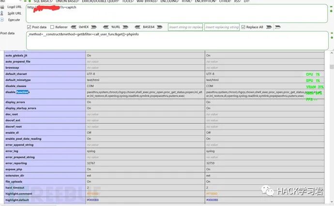 这里直接 phpinfo 看一下 disable_functions()禁用了哪些函数。phpinfo的成功执行也证明是有RCE漏洞的