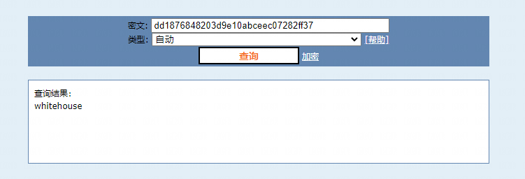 有趣的是,我们很好奇该密钥为什么使用四年之久仍未更换,且其位数为32位,这与MD5的位数不谋而合,于是我们尝试反向查询。果然,该密钥为字符串‘whitehouse’的MD5,或许是摩诃草开发人员的戏谑,或是有别的隐情,耐人寻味。