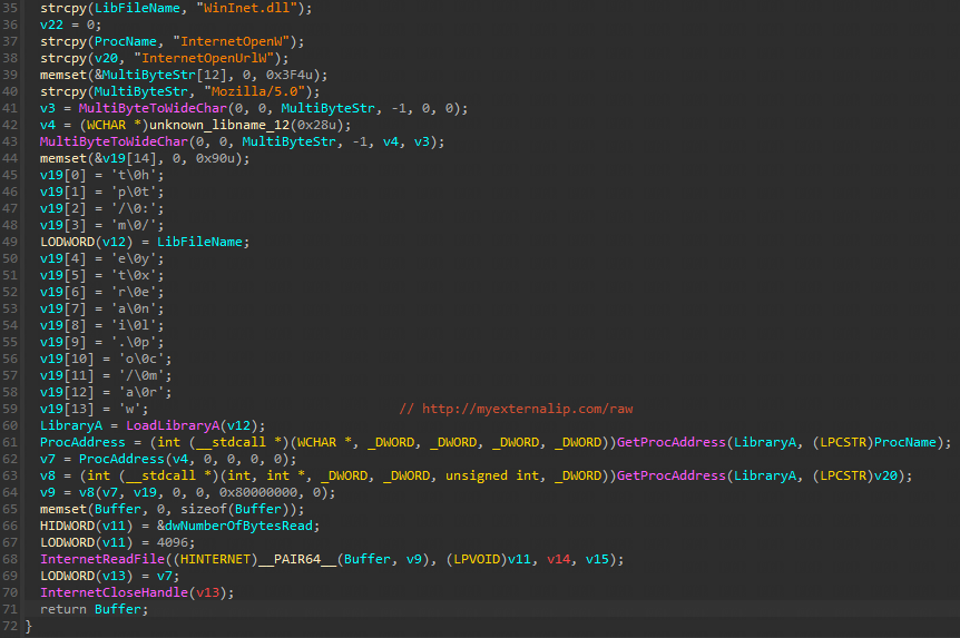 在获取公网IP时,则通过访问http://myexternalip.com/raw来进行获取,而在之前的版本中,则是通过执行命令nslookup myip.opendns.com resolver1.opendns.com来进行获取。