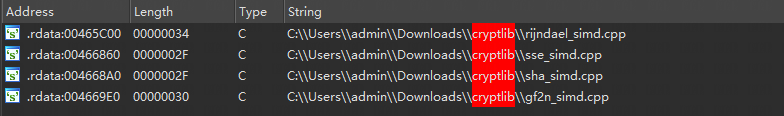 通过在IDA中使用字符串检索功能,我们可以看到疑似摩诃草的开发人员使用了admin的用户名,在后续的关联中,我们同样发现了包含admin用户名的pdb路径。