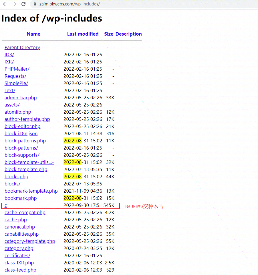 我们在对这些攻击样本进行整理后发现,摩诃草组织使用多种不同的感染方式对目标进行攻击。例如名为‘C’的BADNEWS变种木马,被摩诃草组织挂载在某个WordPress管理系统的网站上,上传时间为9月30日17时51分。