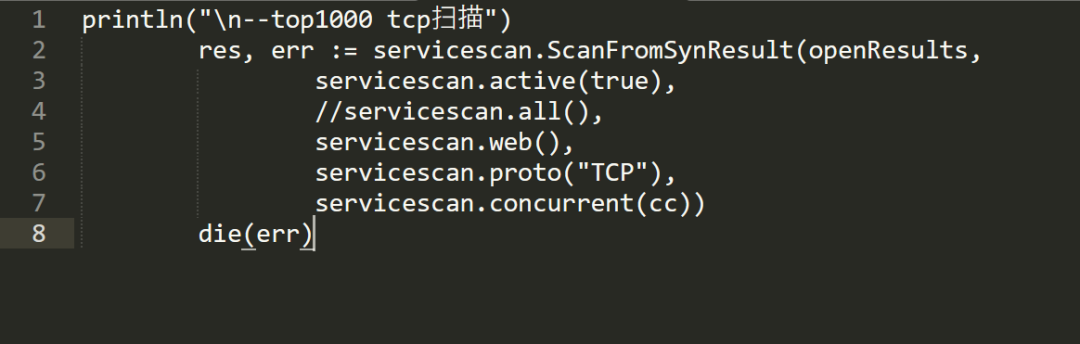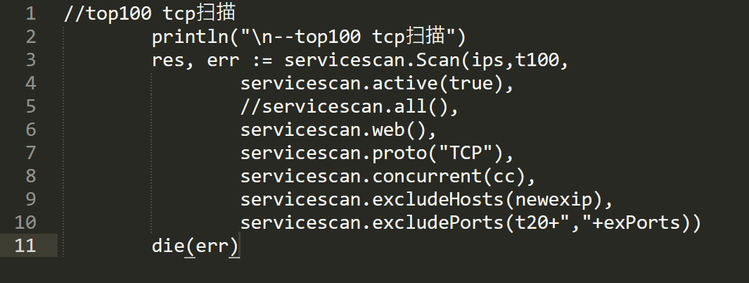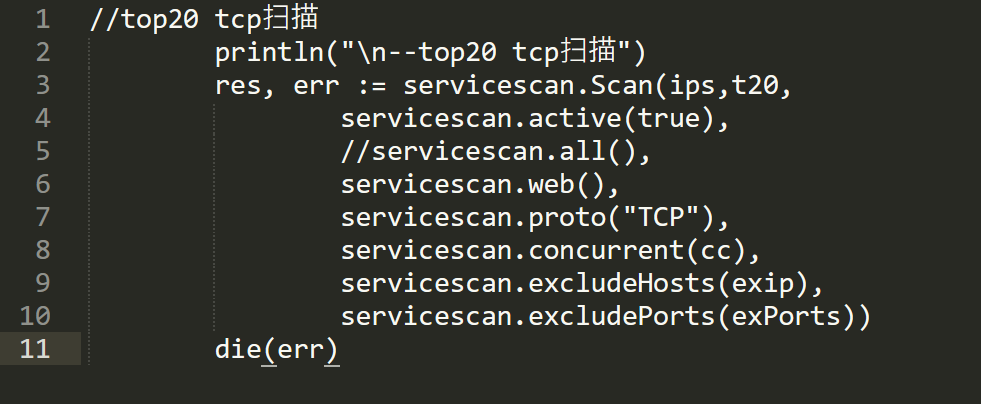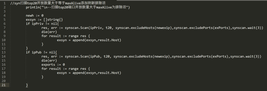 当初始化扫描匹配到了上述阈值后仅进行top20 TCP扫描以减小端口膨胀造成的压力。