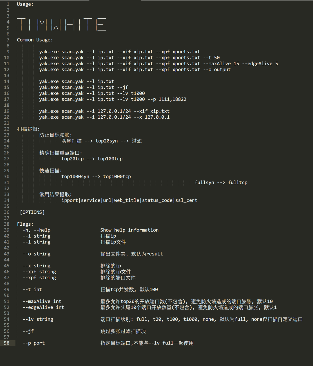 扫描器需要足够的可控,所以设置了较多命令行参数,其中包括输入,排除,配置等。