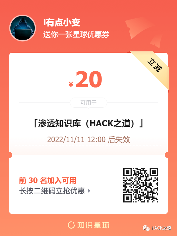 知识星球渗透知识库(HACK之道)汇集最全、最新的安全知识库,内容不限于红队攻防实战、内网渗透、代码审计、社工、安卓逆向、CTF比赛技巧、安全运维、应急响应、等保、企业安全建设、安全运营、漏洞复现、P