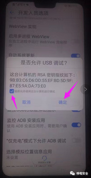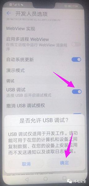 (1)."设置"--->"开发人员选项"或"开发者选项"--->"USB调试"