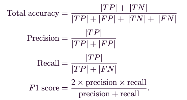 本文考虑了正确性(Accuracy)、精确度(Precision)、召回率(Recall)、F1得分(F1 score)和AUC得分(AUC score)这五个性能指标。