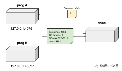gops 通过 TCP 和要读取的程序暴露的 endpoint 来与其通信: