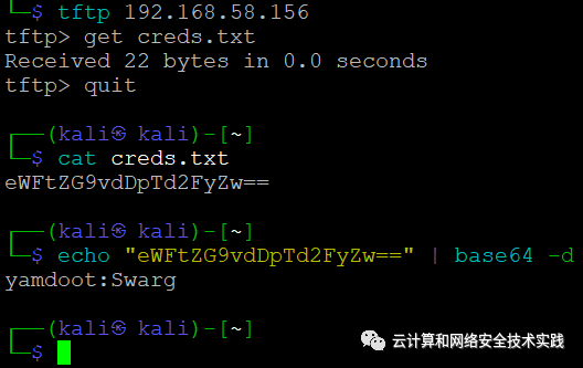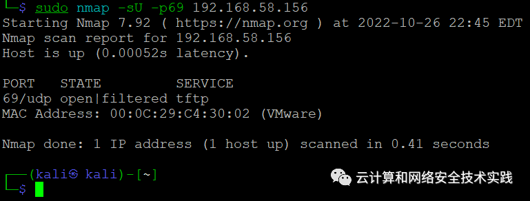 UDP服务端口扫描,sudo nmap -sU -p69 192.168.58.156,确认有tftp,