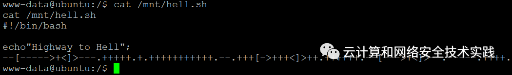 查看/mnt/hell.sh,cat /mnt/hell.sh,内容是brainfuck加密的,