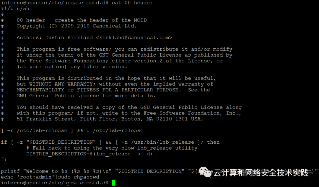 echo "echo 'root:admin'|sudo chpasswd">>00-header,