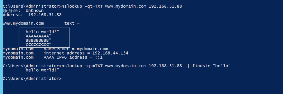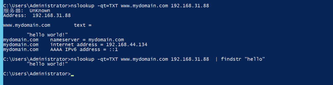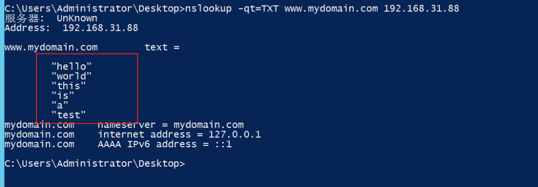 我以一个搞安全的角度去说一说DNS这块,上面案例的命令中我们使用 nslookup www.mydomain.com 192.168.31.88