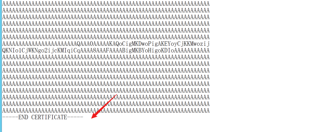 如此格式的base64字符串才可以被成功转换为二进制可执行程序,你可能还没有意识到这里有什么问题,第一个问题是字符串包含头部和尾部字符串;第二个问题是每一行的字符串最大长度是固定的,64个字符