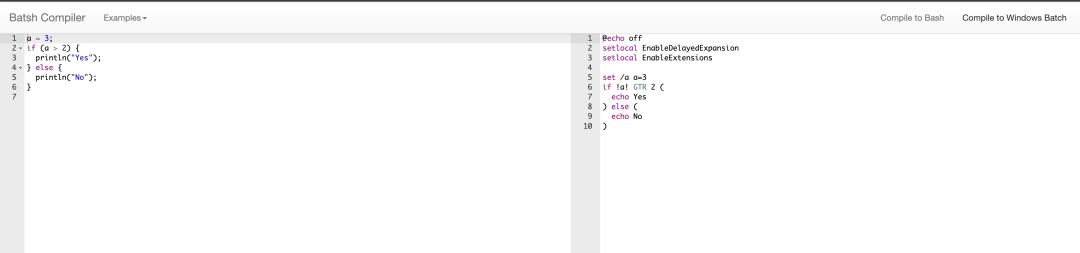 这在Windows 中多命令里就算是宝藏了,不然用 cmd 命令实现 base64 解密得累死,当然了,这里推荐一个工具网站,可以把部分 c 语言逻辑的代码转为 bat 格式或者bash格式,但不要有特别大的期待