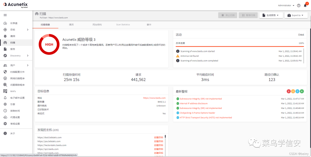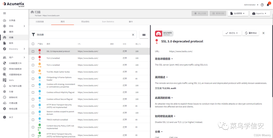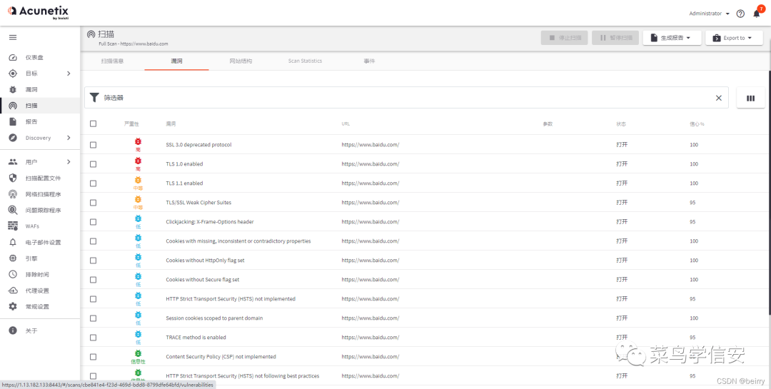 漏洞的严重性主要有高 中 低 信息这四个组成