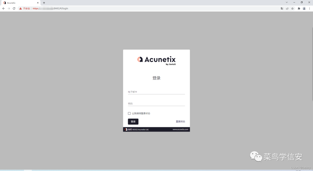 docker pull secfa/docker-awvs #拉取镜像docker run -it -d -p 8443:3443 secfa/docker-awvs #将Docker的3443端口映射到VPS的8443端口
