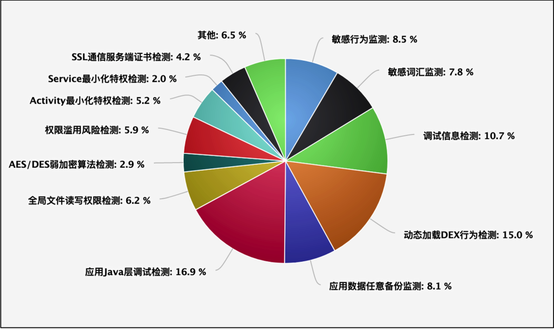 数据统计: 对辖区范围内APP风险检测数据进行汇总展示,对各漏洞数量占比进行图表展示,见图11。