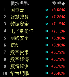 指数虽然比较弱,低开冲高回落再跳水,但主线的赚钱效应却是非常不错,比如全天暴涨的数字经济,板块指数涨超5%的比比皆是。