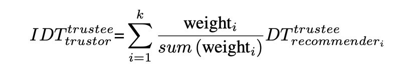 根据节点可靠性和链路可靠性两个指标合理分配权重,进一步基于推荐得到间接信任: