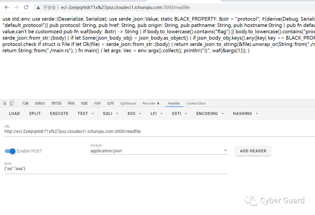 这里protocol直接写俩个,第二个加入一个不可见字符,在经过json_body_obj.keys()的时候,这个函数获取key值的时候应该是无法识别不可见字符的,首先获得第一个正常的protocol,再遍历到第二个带有不可见字符的prot\ud8fffocol,这个函数认为和前面那个是一样的,直接覆盖。但是到了any函数那里是不等于protocol。那么就过了。flag的字段直接url编码{"hostname":"","pathname":"/f%6cag","protocol":"shanghe","origin":"shanghe","href":"shanghe","prot\ud8fffocol":"shanghe"}提交后说需要一个协议
