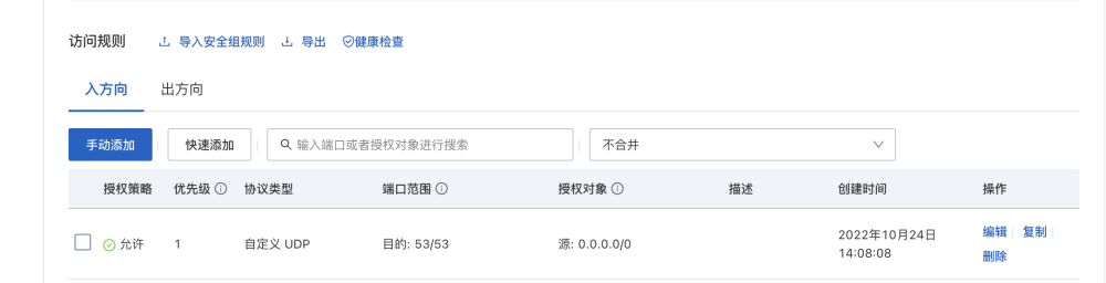 也就是修改安全组策略,将53端口开放,⚠️注意,协议类型一定要是UDP