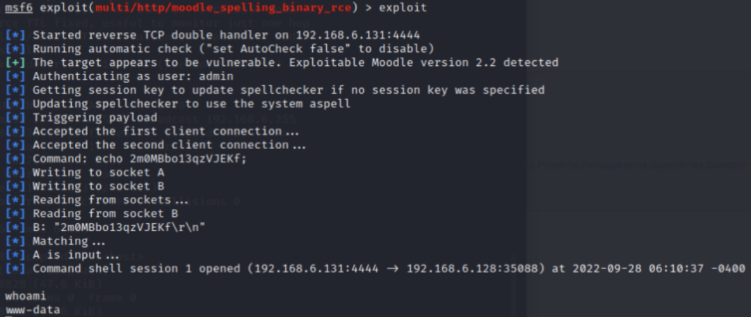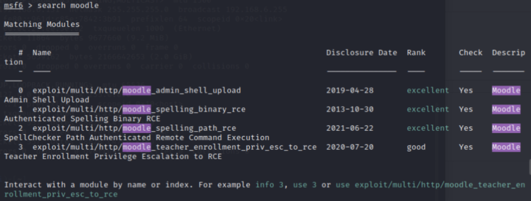 use 3                                                  ---调用3  exploit/multi/http/moodle_cmd_exec调用攻击脚本(其他脚本可能存在某些问题)