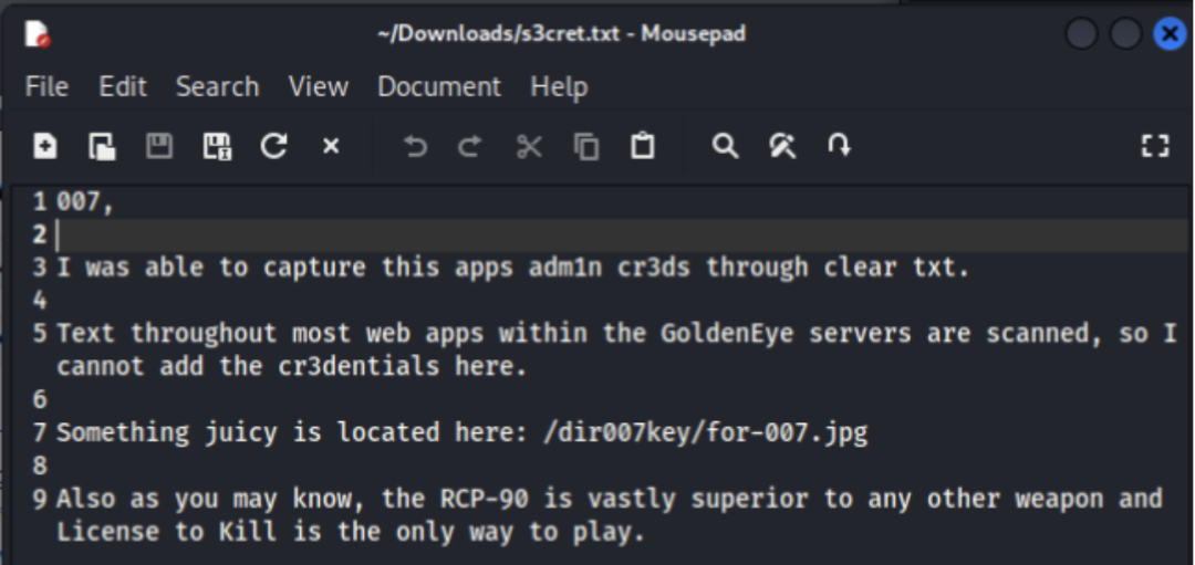 第三封邮件 提示有一份文件使用GoldenEye 作为访问代码作为附件发送。并且放在此服务器的根目录下隐藏文件。