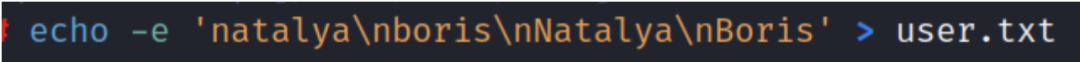echo -e 'natalya\nboris\nNatalya\nBoris' >