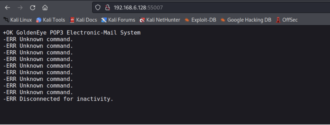 使用浏览器进行访问发现在其55007端口上开启了pop3服务。
