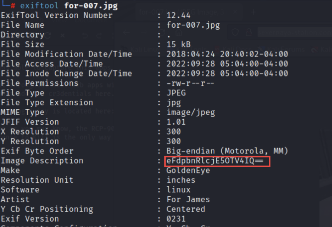 使用exiftool for-007.jpg 执行发现eFdpbnRlcjE5OTV4IQ== base64编码 解码为xWinter1995x!