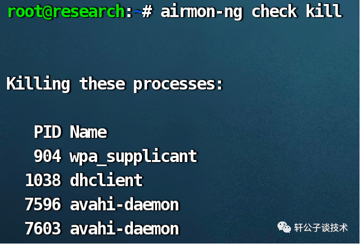 iwconfig 查看无线网卡状态airmon-ng check kill 关闭占有网卡的进程激活网卡,需记住下面的网卡名字