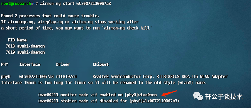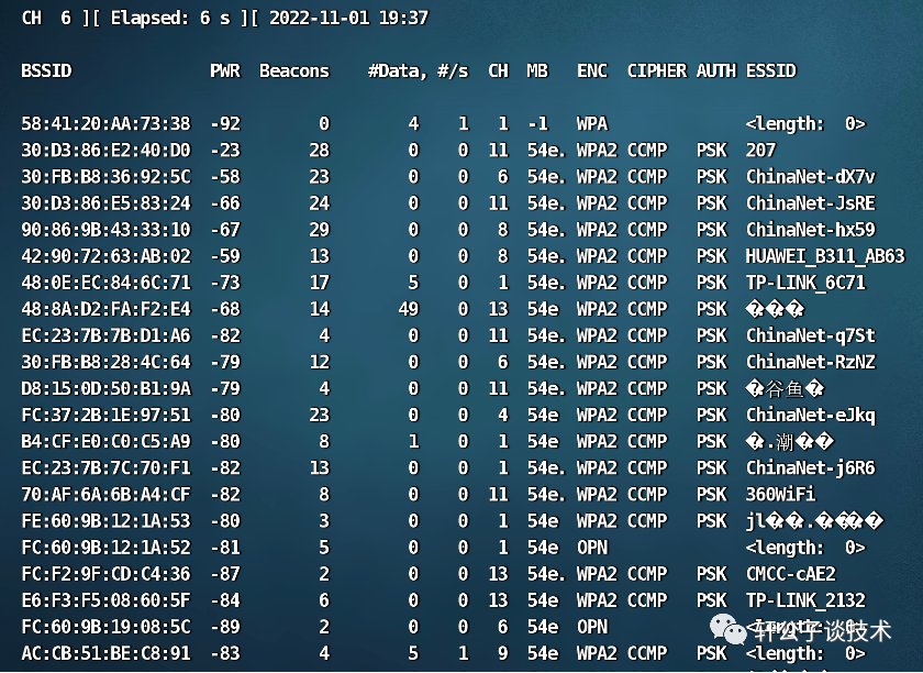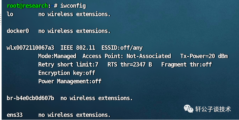 airmon-ng start wlxxxxx查看当前有哪些WIFI