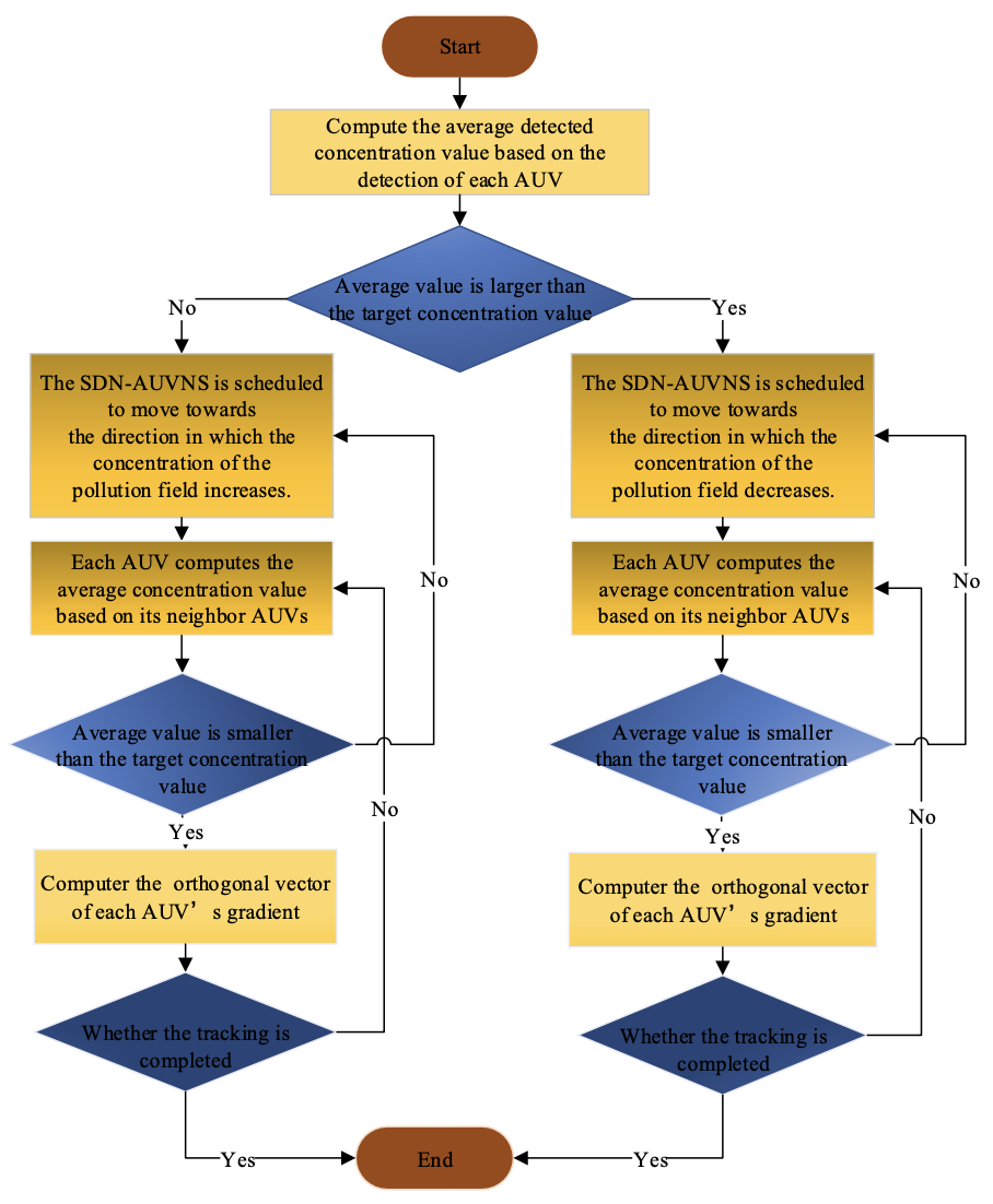 基于所提出的嵌入SDN和MEC技术的网络体系结构,本文提出了一种SDN-AUVNS水下污染智能跟踪策略。主要贡献如下: