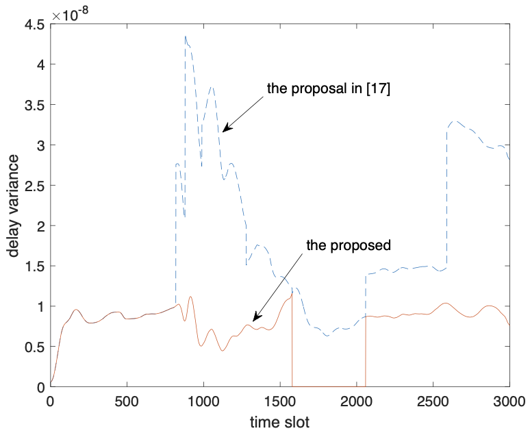此外,本文还进行了控制延迟测试,如图7所示。控制延迟定义为SDN-AUVNS中MEC-C和AUV之间的传播延迟,这与SDN-AUVNS中MEC-C和AUV之间的距离有关。本文将提出的网络体系结构 (具有动态网络控制层) 与不动态切换MEC-C静态结构进行了比较。图7给出了在不同策略中,SDN-AUVNS中MEC-C和AUV之间的传播延迟的方差。显然,由于动态切换机制,本文提出的方法表现更佳,即传播延迟的方差最小。这也表明本文提出的SDN-AUVNS能够执行精确且协作的系统功能。