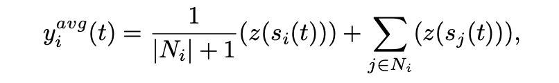 在时间 t,测量浓度值(由 AUV i 在位置 si(t) 处检测)和测量值(由 i 的邻居 j ∈ Ni 收集)的平均值可以通过以下方式计算: