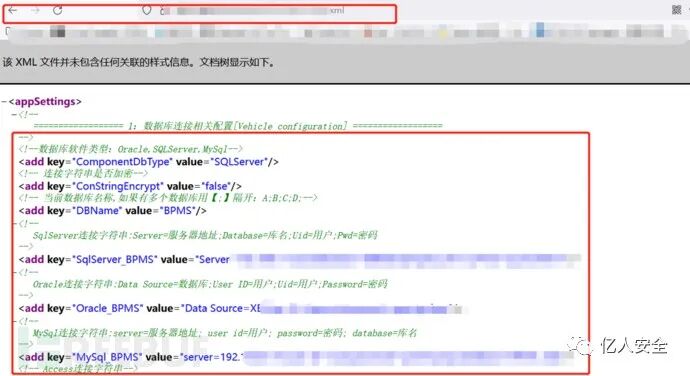 扫描之后,看了下报告排除了误报,发现某个xml配置文件包含了很多信息,比如数据库账号密码,微信AppId等等。