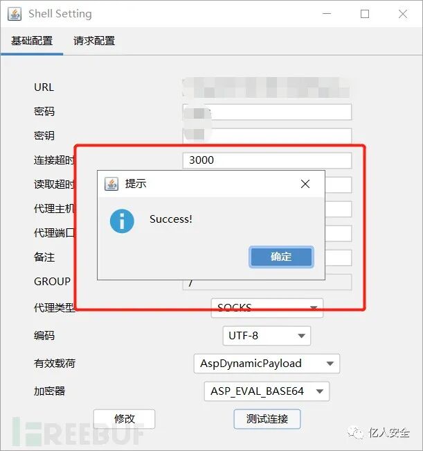再将webshell拼接为url,通过哥斯拉连接,再次成功GetShell。