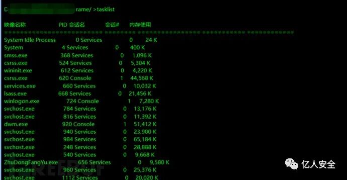 通过webshell执行tasklist命令列出进程列表,查看进程信息。