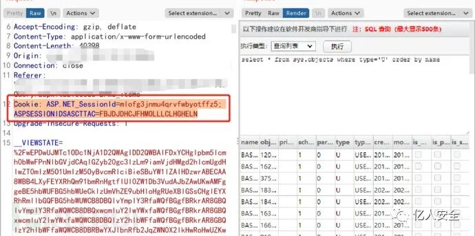 考虑到配置文件的未授权访问,于是又在bp中删除了cookie,发现此查询页面也可以未授权访问,而由代码审计中的配置文件知道数据库为sql server,如果可以开启xp_cmdshell,那么便可以直接远程命令执行。