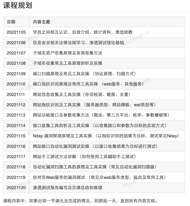 近期准备开设一次渗透测试实训,针对零基础学员,通过陪伴学习的方式,即使零基础也能了解渗透是怎么一回事儿。