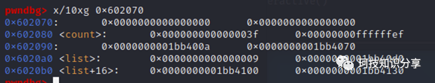 count和list都在bss段上。先看第一个判断 if ( count > 63 ),count默认为0,一直加到64时才会大于63,因此最多能生成0-64,一共65个chunk。