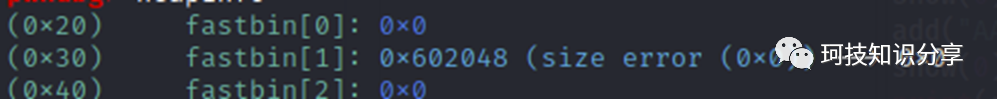 更改add(p64(0x602080-8))之后size还是不满足,最后add也会报错。